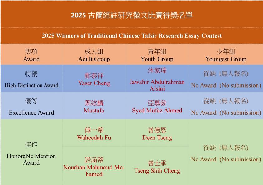 2025古蘭經註研究徵文比賽結果公告